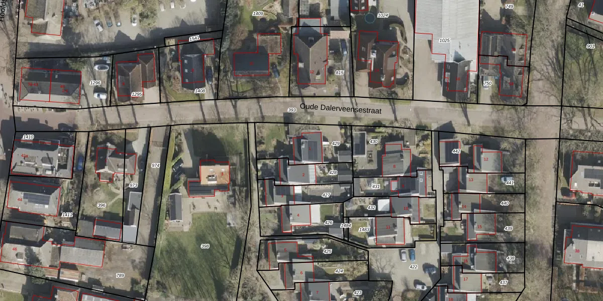 Het perceel waarop het adres ligt is DLN00-M-429. De afkorting 'DLN00' staat voor kadastrale gemeente Dalen. Het perceel is kleiner dan gemiddeld in Dalen. Het perceel is 404 m² groot, terwijl het gemiddelde ligt op 1,2 ha. Het grootste perceel in de kadastrale gemeente is 66,8 ha. Het kleinste perceel heeft een oppervlakte van 0 m². Op het perceel bevinden zich geen andere adressen. De huidige grenzen van het perceel zijn digitaal in de Basisregistratie Kadaster (BRK) geregistreerd op 09-09-2003.