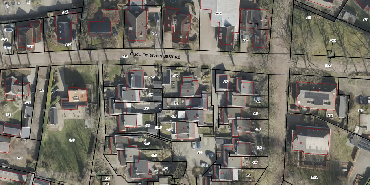 Het perceel waarop het adres ligt is DLN00-M-430. De afkorting 'DLN00' staat voor kadastrale gemeente Dalen. Het perceel is kleiner dan gemiddeld in Dalen. Het perceel is 418 m² groot, terwijl het gemiddelde ligt op 1,2 ha. Het grootste perceel in de kadastrale gemeente is 66,8 ha. Het kleinste perceel heeft een oppervlakte van 0 m². Dit is het enige adres dat aanwezig is op het perceel. De huidige grenzen van het perceel zijn digitaal in de Basisregistratie Kadaster (BRK) geregistreerd op 09-09-2003.