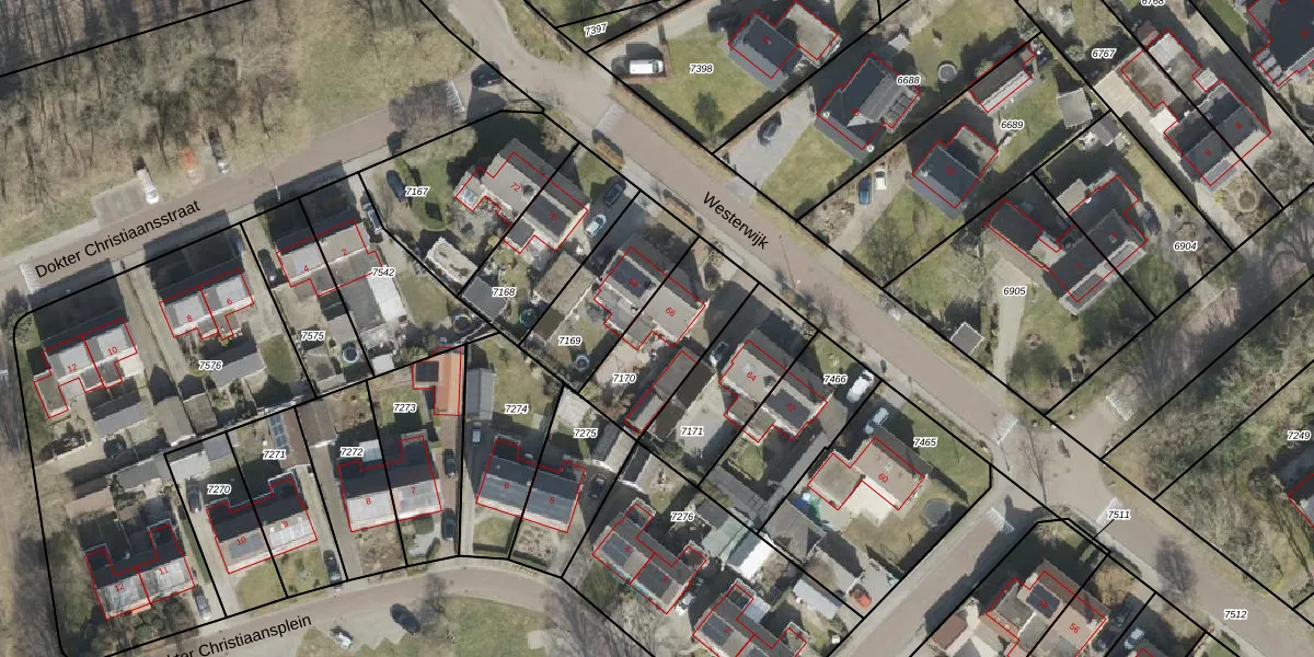 Westerwijk 66 is gelegen op kadastraal perceel DLN00C7170. Deze kadastrale aanduiding is uniek en wordt gebruikt door het Kadaster om eigendomsrechten en andere zakelijke rechten vast te leggen. Het perceel maakt onderdeel uit van de kadastrale gemeente Dalen.