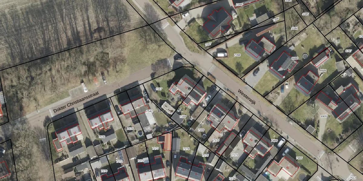 Westerwijk 72 is gelegen op kadastraal perceel DLN00C7167. Deze kadastrale aanduiding is uniek en wordt gebruikt door het Kadaster om eigendomsrechten en andere zakelijke rechten vast te leggen. Het perceel maakt onderdeel uit van de kadastrale gemeente Dalen.