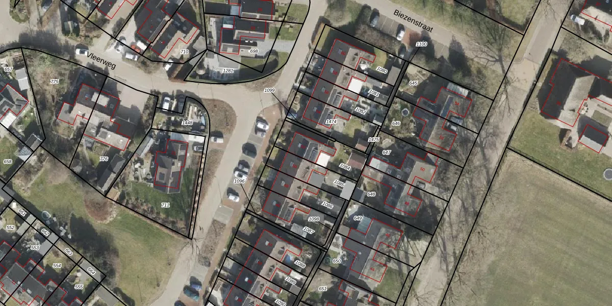 Gebruik de zoekbalk of klik op een perceel voor informatie over de adressen binnen dit perceel.
