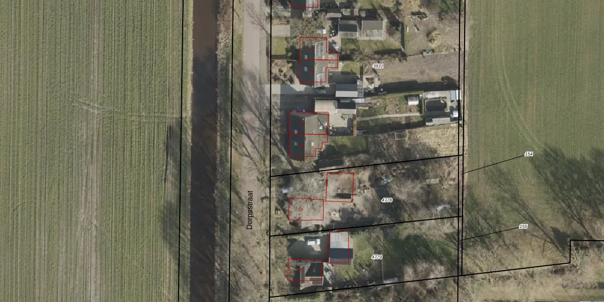 Het perceel waarop Dorpsstraat 14 staat heeft een oppervlakte van 4680 m². Dit is een zeer groot perceel. De perceeloppervlakte wordt geregistreerd door het Kadaster. Gedetailleerde informatie over de maten van dit perceel kunt u vinden in het rapport Kadastrale kaart met maatvoering van Dorpsstraat 14.
