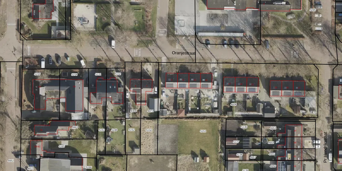Het perceel waarop Oranjestraat 9 staat heeft een oppervlakte van 2980 m². Dit is een zeer groot perceel. De perceeloppervlakte wordt geregistreerd door het Kadaster. Gedetailleerde informatie over de maten van dit perceel kunt u vinden in het rapport Kadastrale kaart met maatvoering van Oranjestraat 9.