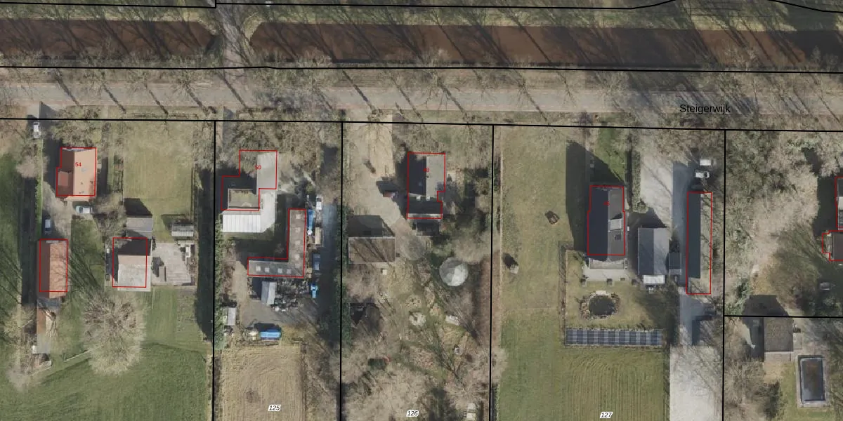 Het perceel waarop Steigerwijk 48 staat heeft een oppervlakte van 4630 m². Dit is een zeer groot perceel. De perceeloppervlakte wordt geregistreerd door het Kadaster. Gedetailleerde informatie over de maten van dit perceel kunt u vinden in het rapport Kadastrale kaart met maatvoering van Steigerwijk 48.