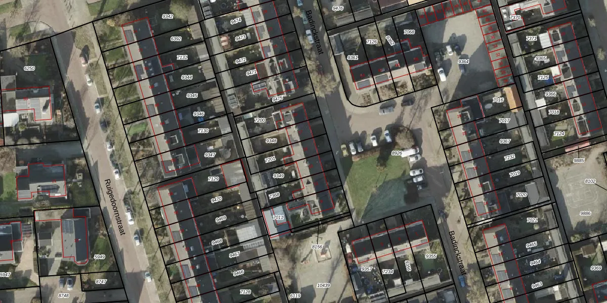 Het perceel waarop Badinckstraat 15 staat heeft een oppervlakte van 166 m². Dit is een middelgroot perceel. De perceeloppervlakte wordt geregistreerd door het Kadaster. Gedetailleerde informatie over de maten van dit perceel kunt u vinden in het rapport Kadastrale kaart met maatvoering van Badinckstraat 15.