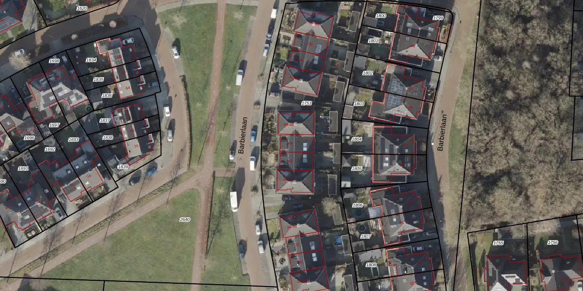 Het perceel waarop Barbierlaan 44 staat heeft een oppervlakte van 2864 m². Dit is een zeer groot perceel. De perceeloppervlakte wordt geregistreerd door het Kadaster. Gedetailleerde informatie over de maten van dit perceel kunt u vinden in het rapport Kadastrale kaart met maatvoering van Barbierlaan 44.