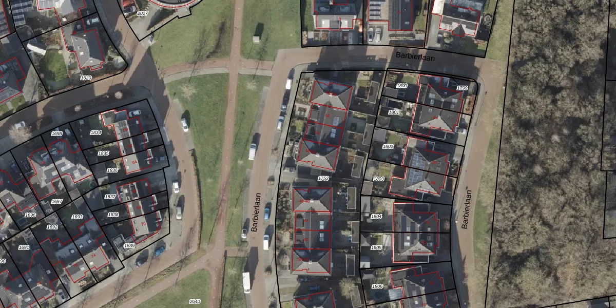Het perceel waarop Barbierlaan 50 staat heeft een oppervlakte van 2864 m². Dit is een zeer groot perceel. De perceeloppervlakte wordt geregistreerd door het Kadaster. Gedetailleerde informatie over de maten van dit perceel kunt u vinden in het rapport Kadastrale kaart met maatvoering van Barbierlaan 50.