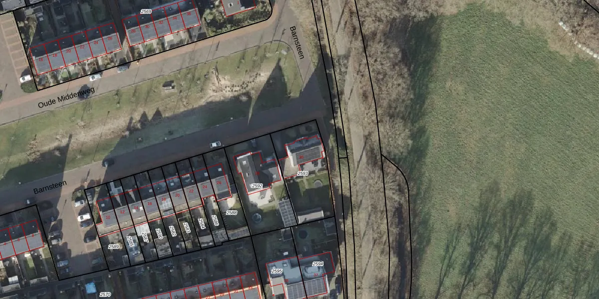 Het perceel waarop Barnsteen 30 staat heeft een oppervlakte van 485 m². Dit is een groot perceel. De perceeloppervlakte wordt geregistreerd door het Kadaster. Gedetailleerde informatie over de maten van dit perceel kunt u vinden in het rapport Kadastrale kaart met maatvoering van Barnsteen 30.