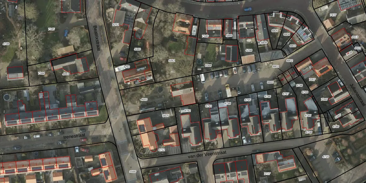 Het perceel waarop Beatrixstraat 3 staat heeft een oppervlakte van 590 m². Dit is een groot perceel. De perceeloppervlakte wordt geregistreerd door het Kadaster. Gedetailleerde informatie over de maten van dit perceel kunt u vinden in het rapport Kadastrale kaart met maatvoering van Beatrixstraat 3.