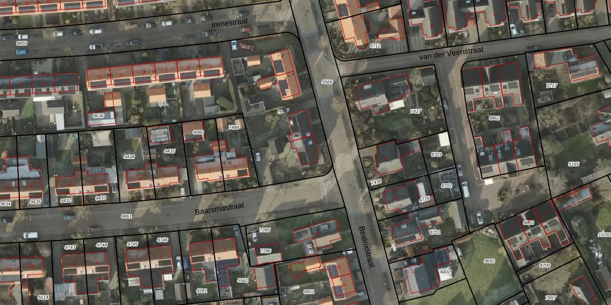Het perceel waarop Beatrixstraat 8 staat heeft een oppervlakte van 3600 m². Dit is een zeer groot perceel. De perceeloppervlakte wordt geregistreerd door het Kadaster. Gedetailleerde informatie over de maten van dit perceel kunt u vinden in het rapport Kadastrale kaart met maatvoering van Beatrixstraat 8.