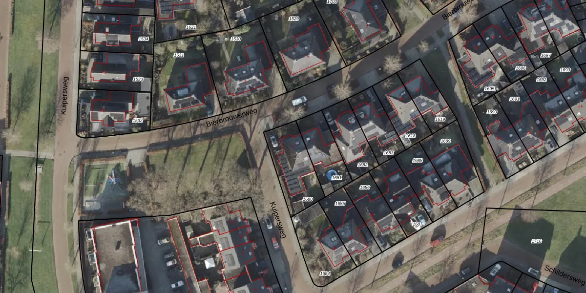 Het perceel waarop Bierbrouwerweg 2 staat heeft een oppervlakte van 366 m². Dit is een groot perceel. De perceeloppervlakte wordt geregistreerd door het Kadaster. Gedetailleerde informatie over de maten van dit perceel kunt u vinden in het rapport Kadastrale kaart met maatvoering van Bierbrouwerweg 2.