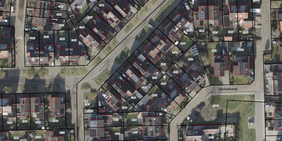 Gebruik de zoekbalk of klik op een perceel voor informatie over de adressen binnen dit perceel.