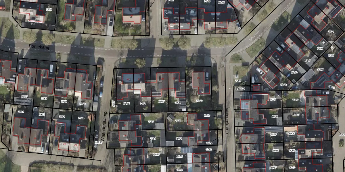 Gebruik de zoekbalk of klik op een perceel voor informatie over de adressen binnen dit perceel.