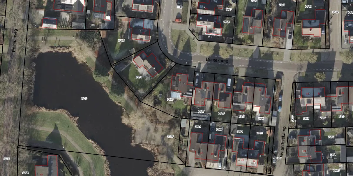 Het perceel waarop Bontekamp 43 staat heeft een oppervlakte van 587 m². Dit is een groot perceel. De perceeloppervlakte wordt geregistreerd door het Kadaster. Gedetailleerde informatie over de maten van dit perceel kunt u vinden in het rapport Kadastrale kaart met maatvoering van Bontekamp 43.