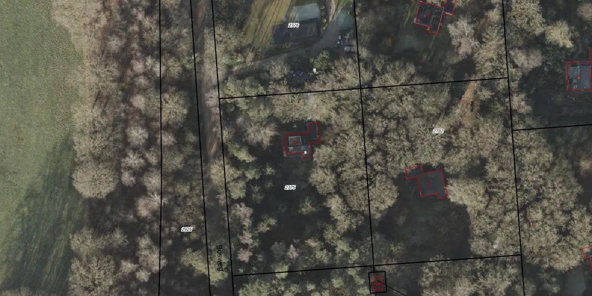Het perceel waarop Bosweg 56 staat heeft een oppervlakte van 2874 m². Dit is een zeer groot perceel. De perceeloppervlakte wordt geregistreerd door het Kadaster. Gedetailleerde informatie over de maten van dit perceel kunt u vinden in het rapport Kadastrale kaart met maatvoering van Bosweg 56.