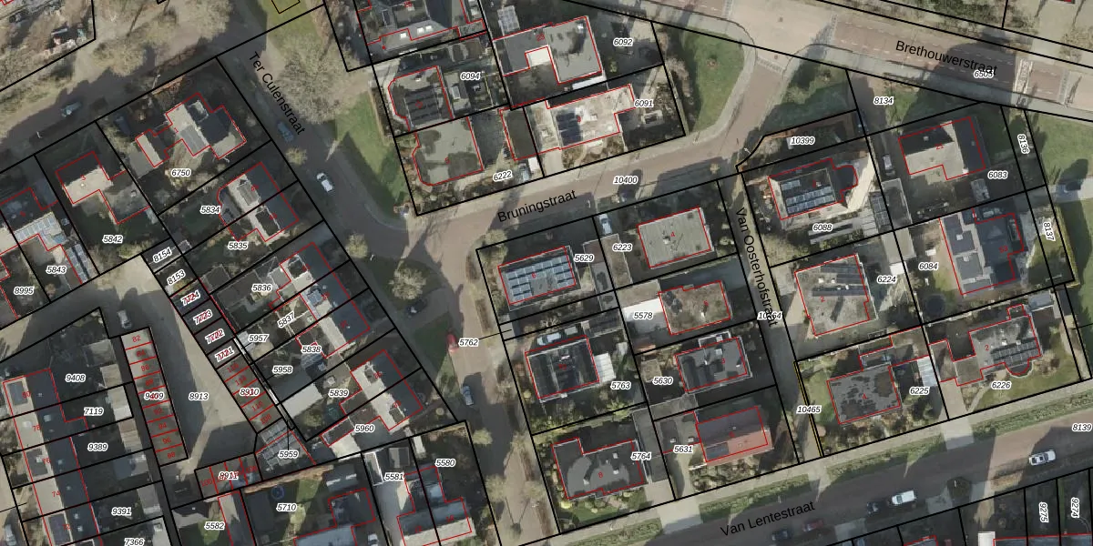 Gebruik de zoekbalk of klik op een perceel voor informatie over de adressen binnen dit perceel.