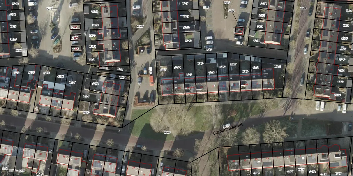 Het perceel waarop Camerlinkstraat 18 staat heeft een oppervlakte van 173 m². Dit is een middelgroot perceel. De perceeloppervlakte wordt geregistreerd door het Kadaster. Gedetailleerde informatie over de maten van dit perceel kunt u vinden in het rapport Kadastrale kaart met maatvoering van Camerlinkstraat 18.