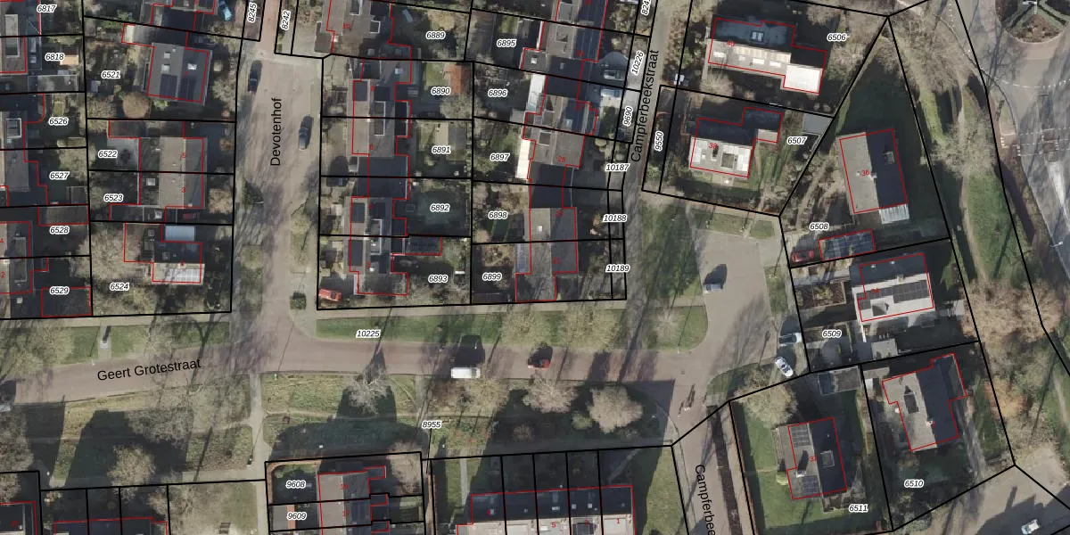 Gebruik de zoekbalk of klik op een perceel voor informatie over de adressen binnen dit perceel.