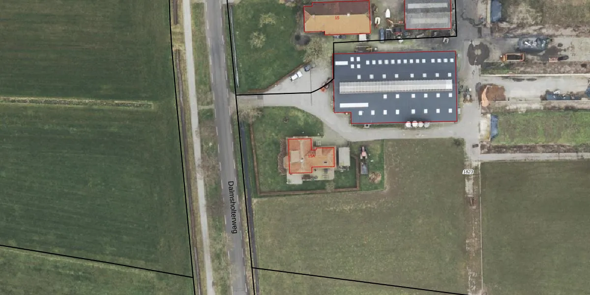 Het perceel waarop Dalmsholterweg 15-A staat heeft een oppervlakte van 1,1 ha. Dit is een zeer groot perceel. De perceeloppervlakte wordt geregistreerd door het Kadaster. Gedetailleerde informatie over de maten van dit perceel kunt u vinden in het rapport Kadastrale kaart met maatvoering van Dalmsholterweg 15-A.