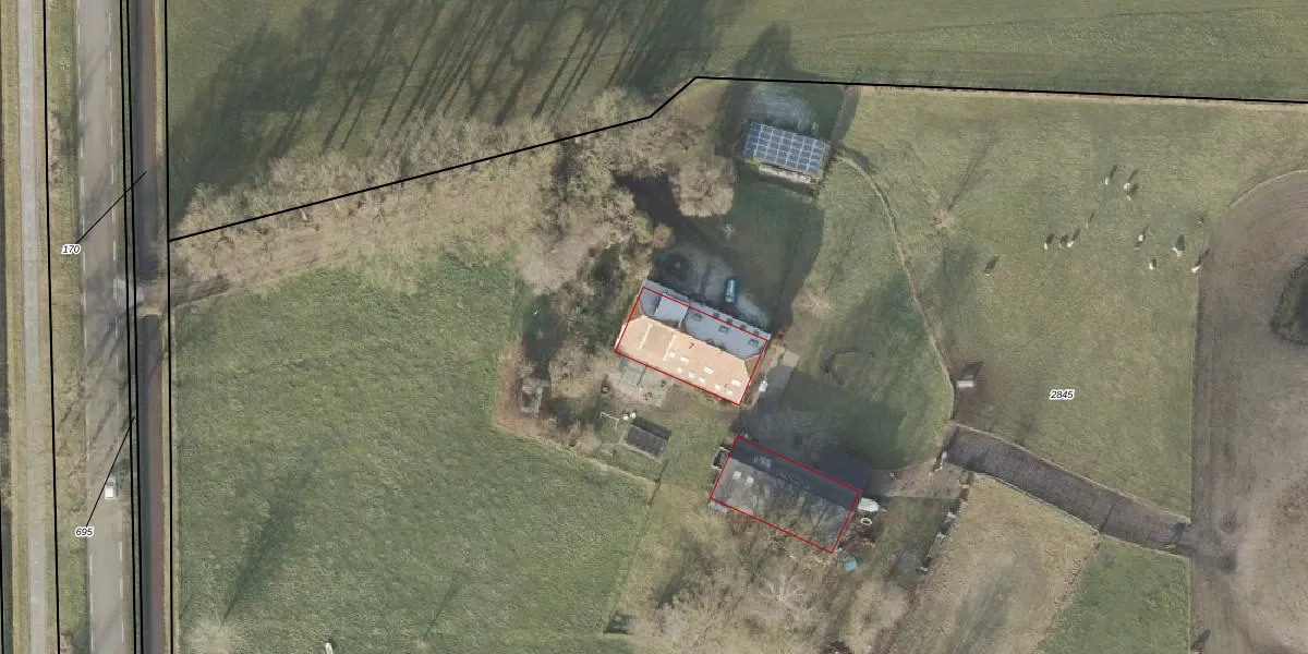 Het perceel waarop Dalmsholterweg 7 staat heeft een oppervlakte van 2,4 ha. Dit is een zeer groot perceel. De perceeloppervlakte wordt geregistreerd door het Kadaster. Gedetailleerde informatie over de maten van dit perceel kunt u vinden in het rapport Kadastrale kaart met maatvoering van Dalmsholterweg 7.