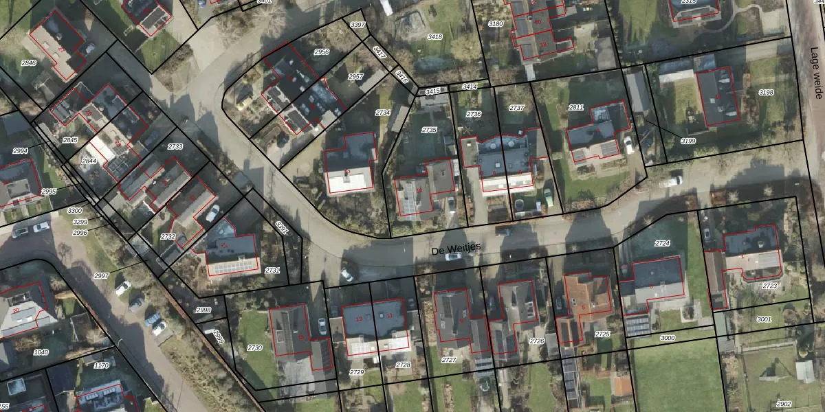 Het perceel waarop De Weitjes 10 staat heeft een oppervlakte van 535 m². Dit is een groot perceel. De perceeloppervlakte wordt geregistreerd door het Kadaster. Gedetailleerde informatie over de maten van dit perceel kunt u vinden in het rapport Kadastrale kaart met maatvoering van De Weitjes 10.