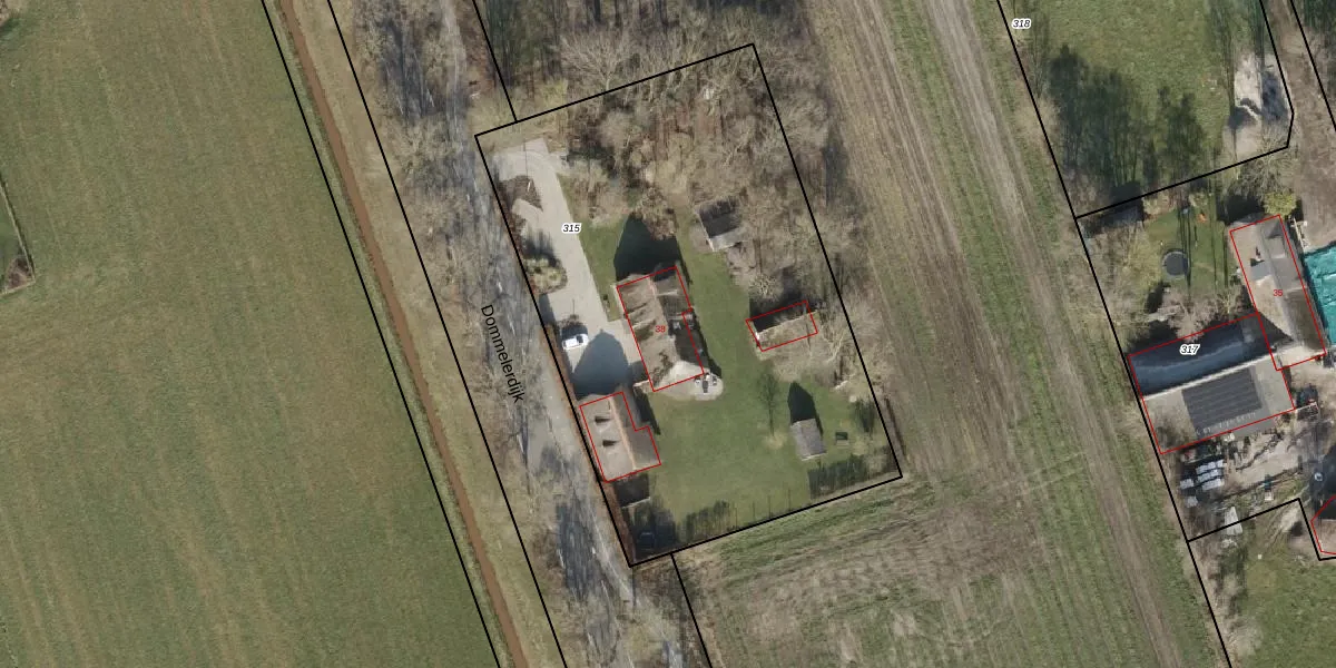 Dommelerdijk 38 is gelegen op kadastraal perceel DSN01W315. Deze kadastrale aanduiding is uniek en wordt gebruikt door het Kadaster om eigendomsrechten en andere zakelijke rechten vast te leggen. Het perceel maakt onderdeel uit van de kadastrale gemeente Dalfsen.