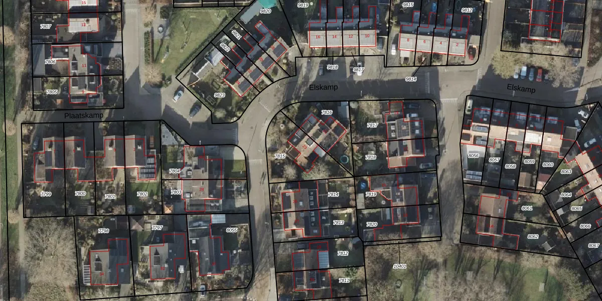 Het perceel waarop Elskamp 23 staat heeft een oppervlakte van 388 m². Dit is een groot perceel. De perceeloppervlakte wordt geregistreerd door het Kadaster. Gedetailleerde informatie over de maten van dit perceel kunt u vinden in het rapport Kadastrale kaart met maatvoering van Elskamp 23.