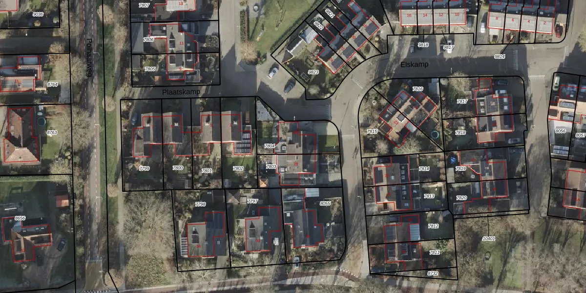 Het perceel waarop Elskamp 26 staat heeft een oppervlakte van 362 m². Dit is een groot perceel. De perceeloppervlakte wordt geregistreerd door het Kadaster. Gedetailleerde informatie over de maten van dit perceel kunt u vinden in het rapport Kadastrale kaart met maatvoering van Elskamp 26.