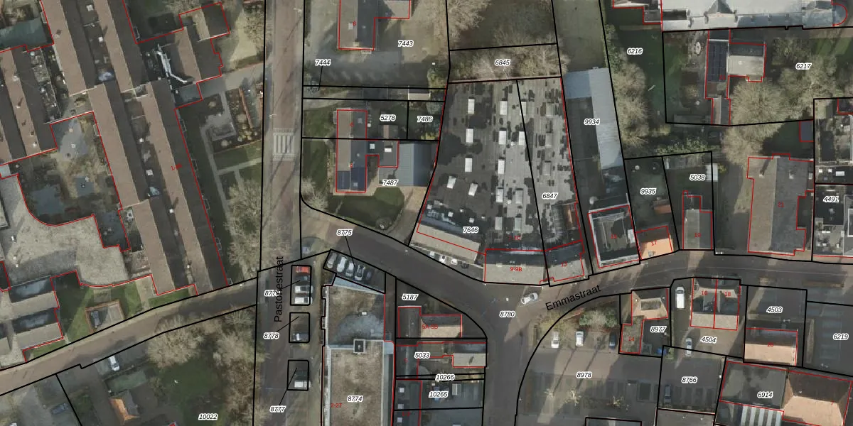 Het perceel waarop Emmastraat 7-C staat heeft een oppervlakte van 1087 m². Dit is een zeer groot perceel. De perceeloppervlakte wordt geregistreerd door het Kadaster. Gedetailleerde informatie over de maten van dit perceel kunt u vinden in het rapport Kadastrale kaart met maatvoering van Emmastraat 7-C.