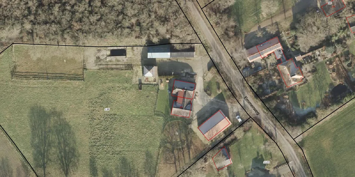 Het perceel waarop Emmerweg 4 staat heeft een oppervlakte van 9775 m². Dit is een zeer groot perceel. De perceeloppervlakte wordt geregistreerd door het Kadaster. Gedetailleerde informatie over de maten van dit perceel kunt u vinden in het rapport Kadastrale kaart met maatvoering van Emmerweg 4.