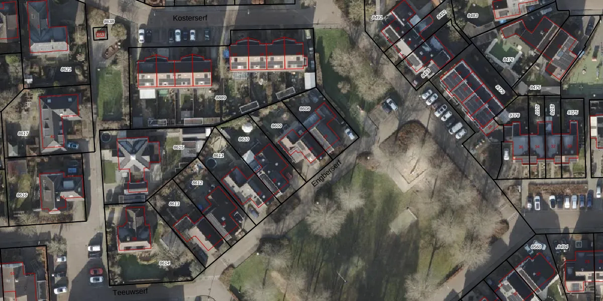 Het perceel waarop Engberserf 26 staat heeft een oppervlakte van 322 m². Dit is een groot perceel. De perceeloppervlakte wordt geregistreerd door het Kadaster. Gedetailleerde informatie over de maten van dit perceel kunt u vinden in het rapport Kadastrale kaart met maatvoering van Engberserf 26.