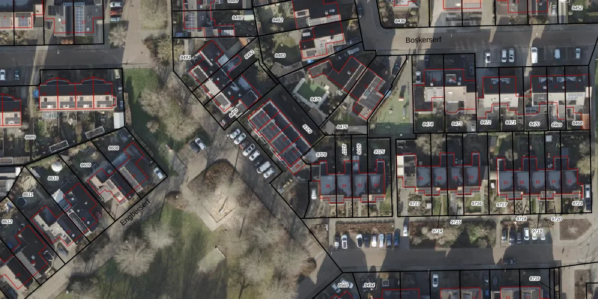 Het perceel waarop Engberserf 4 staat heeft een oppervlakte van 604 m². Dit is een groot perceel. De perceeloppervlakte wordt geregistreerd door het Kadaster. Gedetailleerde informatie over de maten van dit perceel kunt u vinden in het rapport Kadastrale kaart met maatvoering van Engberserf 4.