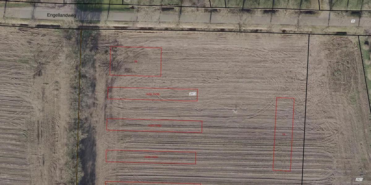 Het perceel waarop Engellandweg 7-A-82 staat heeft een oppervlakte van 1,2 ha. Dit is een zeer groot perceel. De perceeloppervlakte wordt geregistreerd door het Kadaster. Gedetailleerde informatie over de maten van dit perceel kunt u vinden in het rapport Kadastrale kaart met maatvoering van Engellandweg 7-A-82.