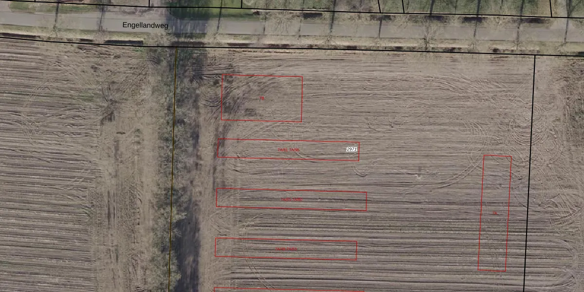 Het perceel waarop Engellandweg 7-A-85 staat heeft een oppervlakte van 1,2 ha. Dit is een zeer groot perceel. De perceeloppervlakte wordt geregistreerd door het Kadaster. Gedetailleerde informatie over de maten van dit perceel kunt u vinden in het rapport Kadastrale kaart met maatvoering van Engellandweg 7-A-85.