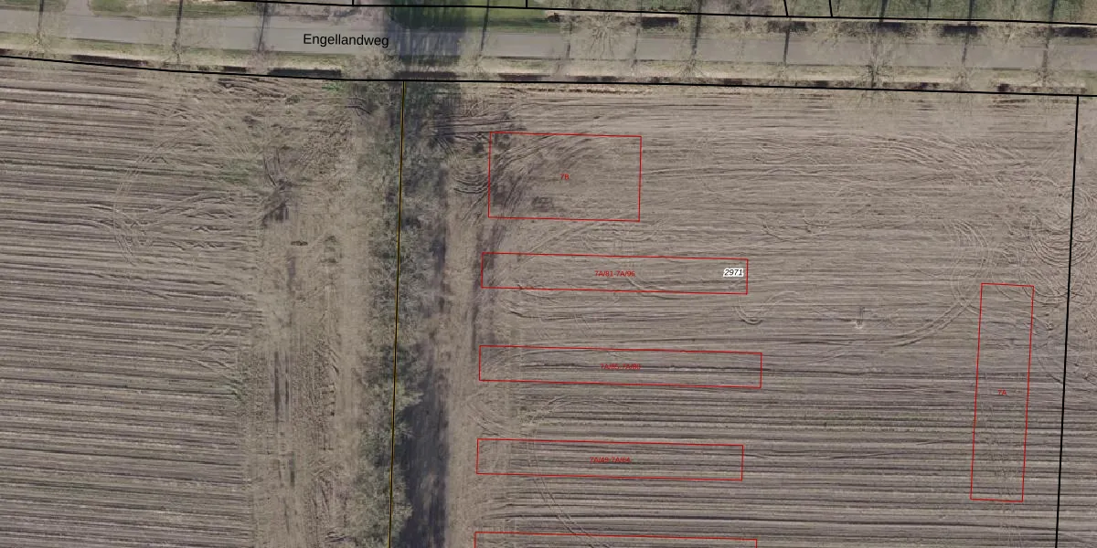 Het perceel waarop Engellandweg 7-A-95 staat heeft een oppervlakte van 1,2 ha. Dit is een zeer groot perceel. De perceeloppervlakte wordt geregistreerd door het Kadaster. Gedetailleerde informatie over de maten van dit perceel kunt u vinden in het rapport Kadastrale kaart met maatvoering van Engellandweg 7-A-95.