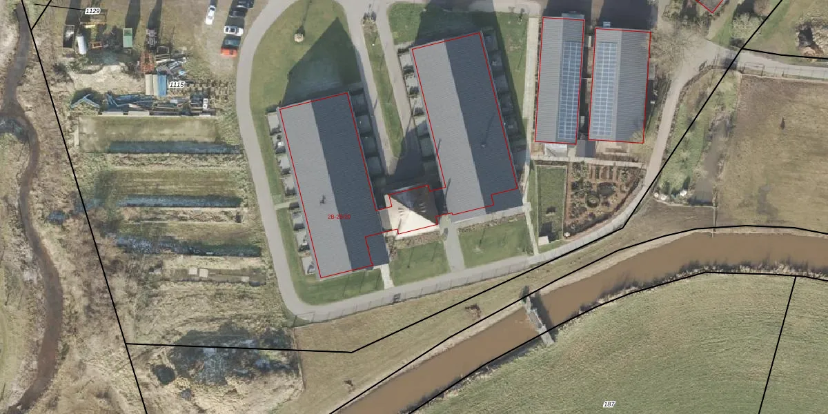 Het perceel waarop Ganzepanweg 2-B staat heeft een oppervlakte van 2,0 ha. Dit is een zeer groot perceel. De perceeloppervlakte wordt geregistreerd door het Kadaster. Gedetailleerde informatie over de maten van dit perceel kunt u vinden in het rapport Kadastrale kaart met maatvoering van Ganzepanweg 2-B.