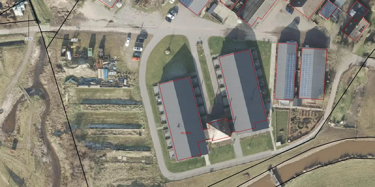 Het perceel waarop Ganzepanweg 2-B-8 staat heeft een oppervlakte van 2,0 ha. Dit is een zeer groot perceel. De perceeloppervlakte wordt geregistreerd door het Kadaster. Gedetailleerde informatie over de maten van dit perceel kunt u vinden in het rapport Kadastrale kaart met maatvoering van Ganzepanweg 2-B-8.