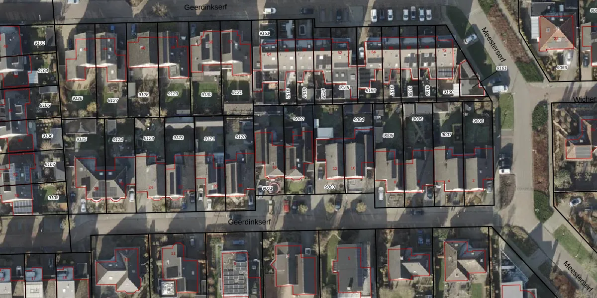 Het perceel waarop Geerdinkserf 14 staat heeft een oppervlakte van 300 m². Dit is een groot perceel. De perceeloppervlakte wordt geregistreerd door het Kadaster. Gedetailleerde informatie over de maten van dit perceel kunt u vinden in het rapport Kadastrale kaart met maatvoering van Geerdinkserf 14.