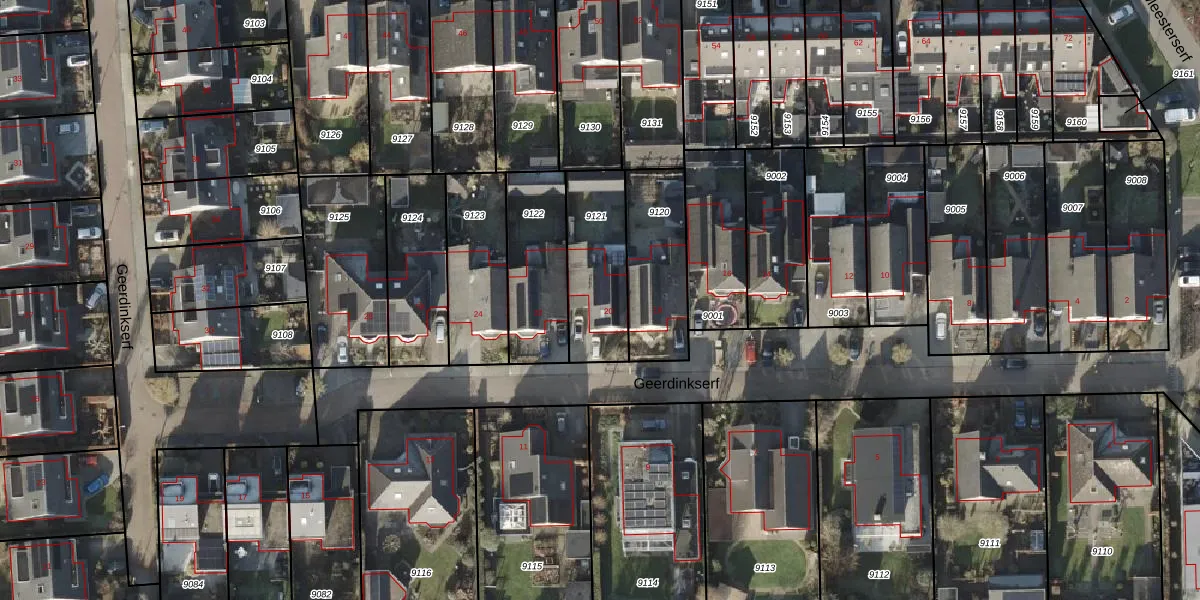 Het perceel waarop Geerdinkserf 20 staat heeft een oppervlakte van 319 m². Dit is een groot perceel. De perceeloppervlakte wordt geregistreerd door het Kadaster. Gedetailleerde informatie over de maten van dit perceel kunt u vinden in het rapport Kadastrale kaart met maatvoering van Geerdinkserf 20.