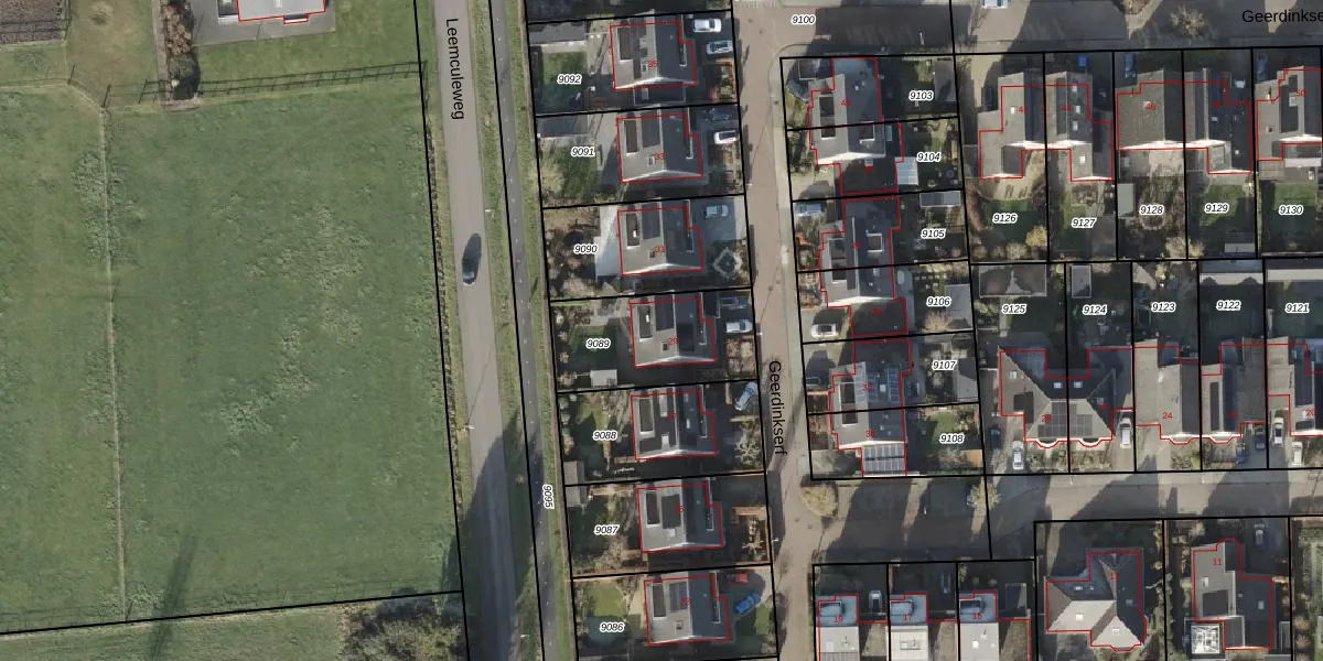 Geerdinkserf 29 is gelegen op kadastraal perceel DSN01K9089. Deze kadastrale aanduiding is uniek en wordt gebruikt door het Kadaster om eigendomsrechten en andere zakelijke rechten vast te leggen. Het perceel maakt onderdeel uit van de kadastrale gemeente Dalfsen.