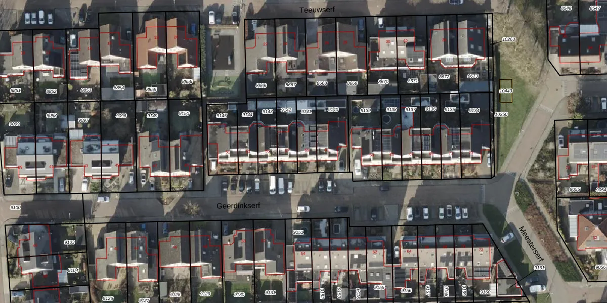 Het perceel waarop Geerdinkserf 59 staat heeft een oppervlakte van 163 m². Dit is een middelgroot perceel. De perceeloppervlakte wordt geregistreerd door het Kadaster. Gedetailleerde informatie over de maten van dit perceel kunt u vinden in het rapport Kadastrale kaart met maatvoering van Geerdinkserf 59.