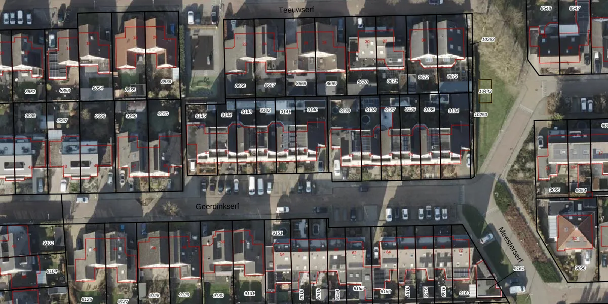 Het perceel waarop Geerdinkserf 61 staat heeft een oppervlakte van 267 m². Dit is een middelgroot perceel. De perceeloppervlakte wordt geregistreerd door het Kadaster. Gedetailleerde informatie over de maten van dit perceel kunt u vinden in het rapport Kadastrale kaart met maatvoering van Geerdinkserf 61.