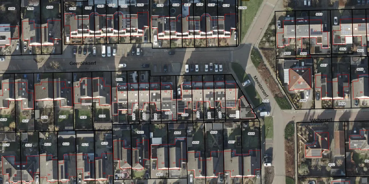 Geerdinkserf 64 is gelegen op kadastraal perceel DSN01K9156. Deze kadastrale aanduiding is uniek en wordt gebruikt door het Kadaster om eigendomsrechten en andere zakelijke rechten vast te leggen. Het perceel maakt onderdeel uit van de kadastrale gemeente Dalfsen.