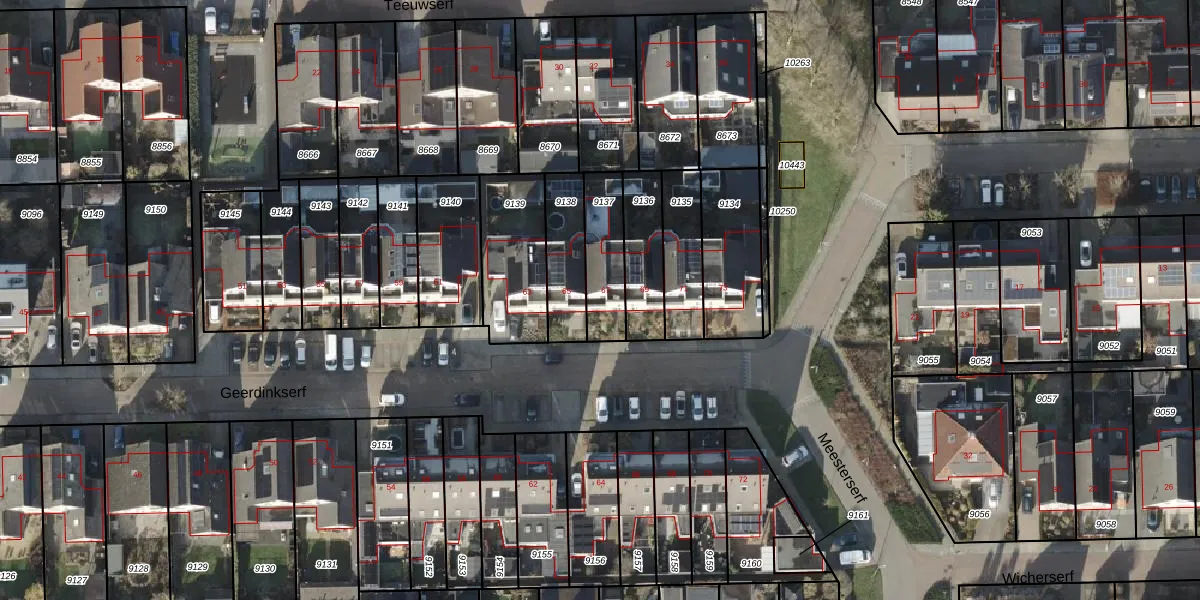 Het perceel waarop Geerdinkserf 67 staat heeft een oppervlakte van 184 m². Dit is een middelgroot perceel. De perceeloppervlakte wordt geregistreerd door het Kadaster. Gedetailleerde informatie over de maten van dit perceel kunt u vinden in het rapport Kadastrale kaart met maatvoering van Geerdinkserf 67.