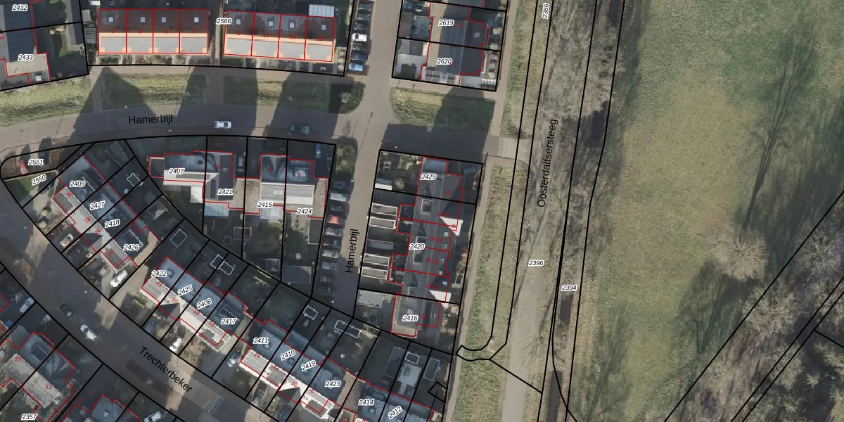 Hamerbijl 12 is gelegen op kadastraal perceel DSN01Q2420. Deze kadastrale aanduiding is uniek en wordt gebruikt door het Kadaster om eigendomsrechten en andere zakelijke rechten vast te leggen. Het perceel maakt onderdeel uit van de kadastrale gemeente Dalfsen.