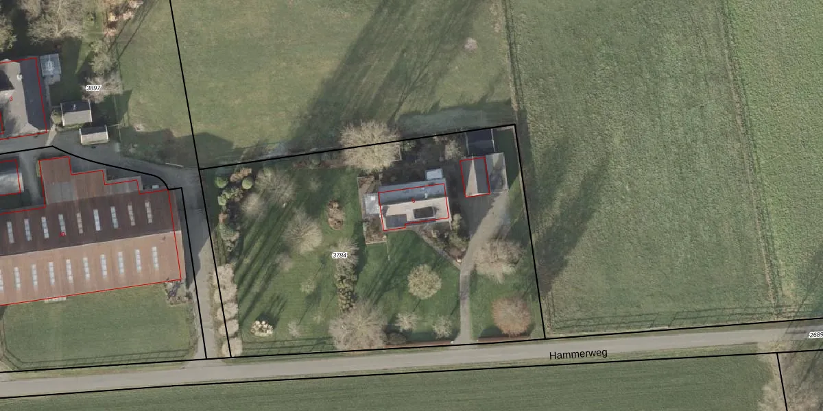 Het perceel waarop Hammerweg 5 staat heeft een oppervlakte van 3775 m². Dit is een zeer groot perceel. De perceeloppervlakte wordt geregistreerd door het Kadaster. Gedetailleerde informatie over de maten van dit perceel kunt u vinden in het rapport Kadastrale kaart met maatvoering van Hammerweg 5.