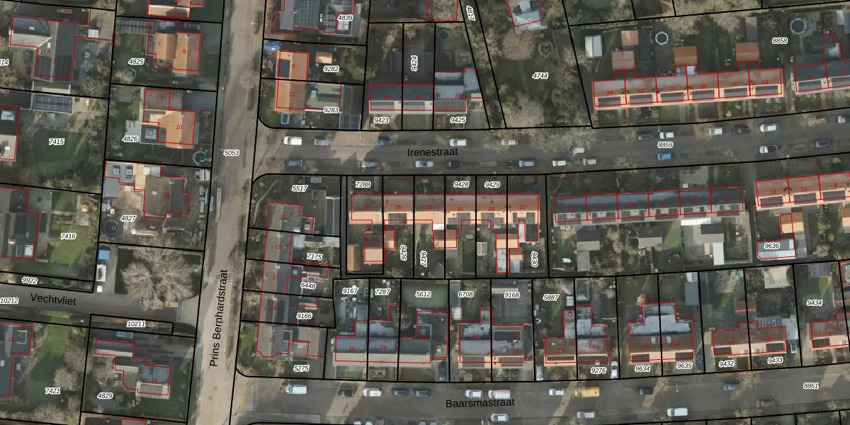 Het perceel waarop Irenestraat 33 staat heeft een oppervlakte van 179 m². Dit is een middelgroot perceel. De perceeloppervlakte wordt geregistreerd door het Kadaster. Gedetailleerde informatie over de maten van dit perceel kunt u vinden in het rapport Kadastrale kaart met maatvoering van Irenestraat 33.