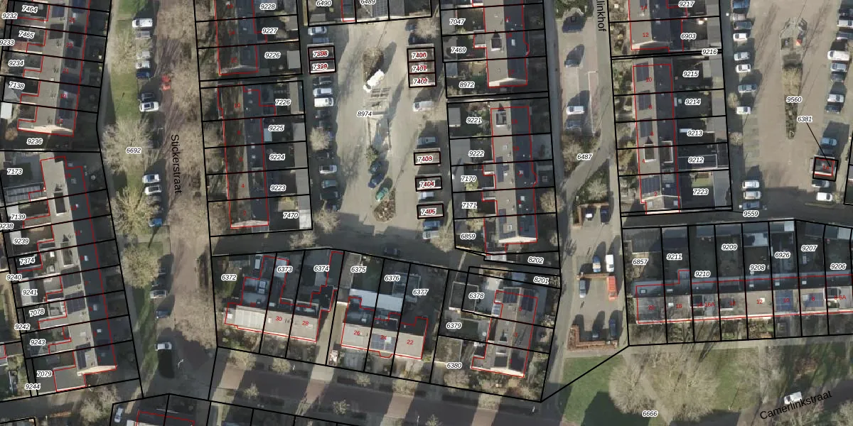 Het perceel waarop Jalinkhof 9-A staat heeft een oppervlakte van 18 m². Dit is een klein perceel. De perceeloppervlakte wordt geregistreerd door het Kadaster. Gedetailleerde informatie over de maten van dit perceel kunt u vinden in het rapport Kadastrale kaart met maatvoering van Jalinkhof 9-A.