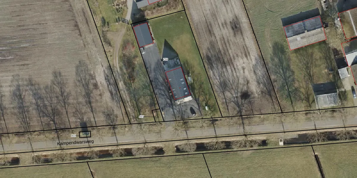 Kampendwarsweg 7 is gelegen op kadastraal perceel DSN01W759. Deze kadastrale aanduiding is uniek en wordt gebruikt door het Kadaster om eigendomsrechten en andere zakelijke rechten vast te leggen. Het perceel maakt onderdeel uit van de kadastrale gemeente Dalfsen.