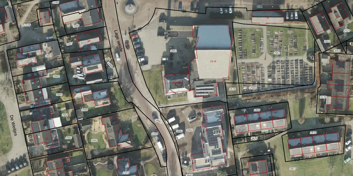 Het perceel waarop Kerkstraat 16-A staat heeft een oppervlakte van 3129 m². Dit is een zeer groot perceel. De perceeloppervlakte wordt geregistreerd door het Kadaster. Gedetailleerde informatie over de maten van dit perceel kunt u vinden in het rapport Kadastrale kaart met maatvoering van Kerkstraat 16-A.